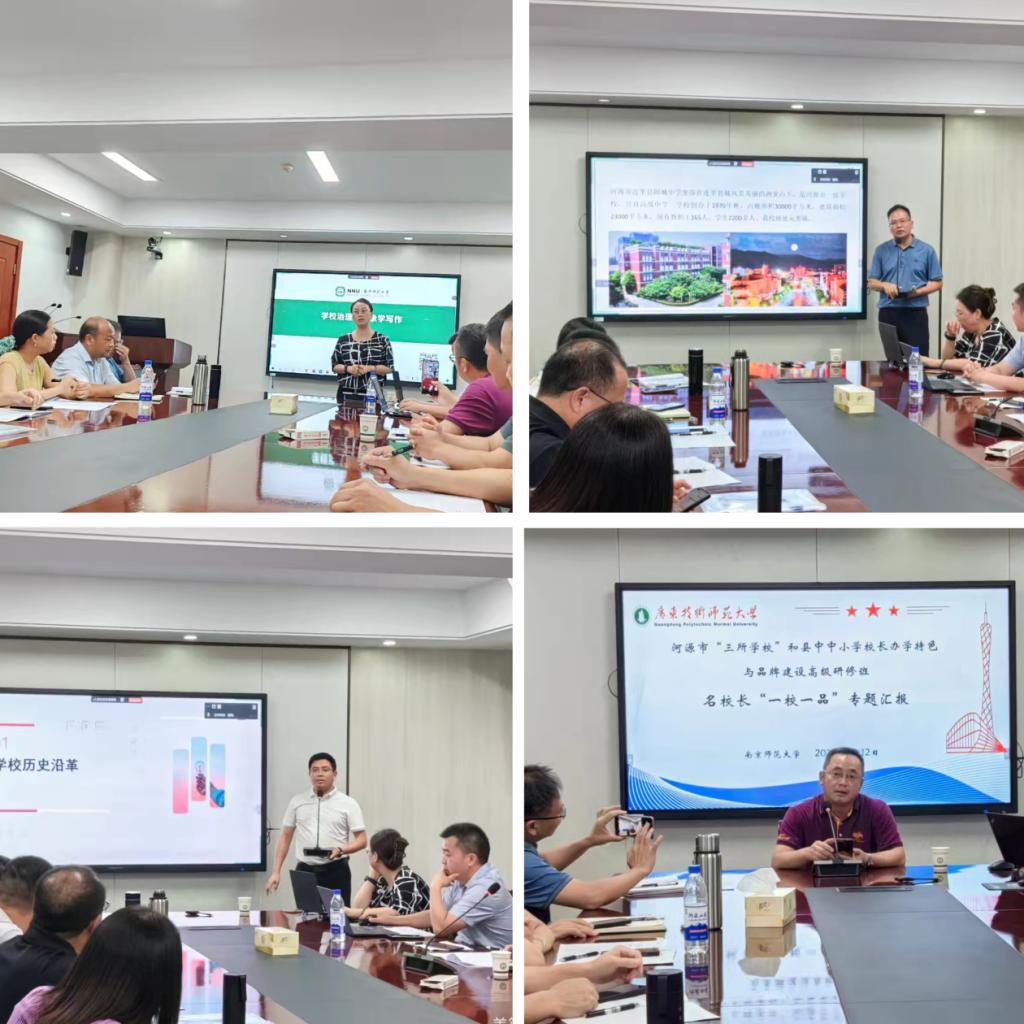 8月12日,研修班精心组织了主题研讨活动,在“我的治校故事”专题中,南师大博士生导师叶晓玲教授作了题为《学校治理与现象学写作》的学术报告,提升了校长们提炼学校品牌建设经验的能力。学员们通过分组研讨,围绕“办学特色和品牌建设”进行充分展示,如广师大河源大塘小学的“童心教育”、龙川麻布岗中学的“脊梁教育”、紫金龙紫实的“根脉教育”、广师大河源高实学校的“乐美教育”、连平附城中学的“成善教育”、连平内莞镇中心小学的“尚善教育”、江东新区长安小学的“修竹教育”、龙川赤光镇中心小学的“翰墨文化”、东源县灯塔中学的“引航教育”、东源县仙塘中学的“上善教育”、东源高级中学的“致美教育”等鲜活理念与实践,河源市基础教育品牌建设的星星之火,正在形成燎原之势!