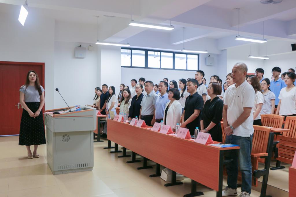 在《中华人民共和国国歌》的雄壮旋律中,典礼正式拉开帷幕。全体新生身着统一服装,昂首高唱国歌,歌声嘹亮。