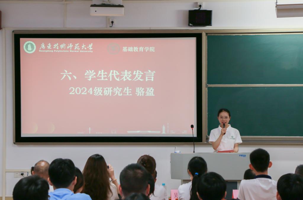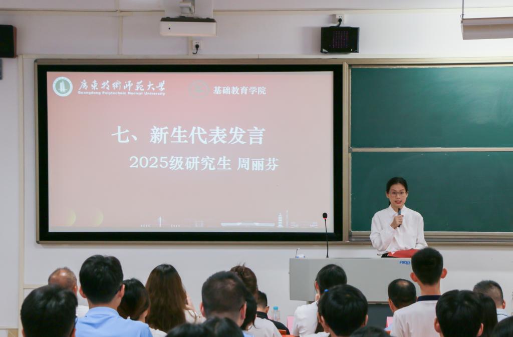 2025级本科生欧阳淑怡、研究生周丽芬作为新生代表则表态,将以饱满热情投入学习研究,为基础教育事业贡献力量。