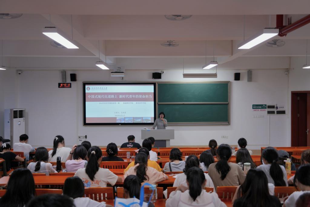 新学期孕育着新希望,新学期承载着新梦想。为进一步加强大学生思想政治工作,学习贯彻广东省高质量发展大会精神。4月1日晚,TapTap点点官方网站吴水爱书记于河源校区唯实楼421开讲春季学期“思政第一课”,授课主题为“中国式现代化道路上,新时代青年的使命担当”。TapTap点点官方网站全体学生参加了本次思政课。