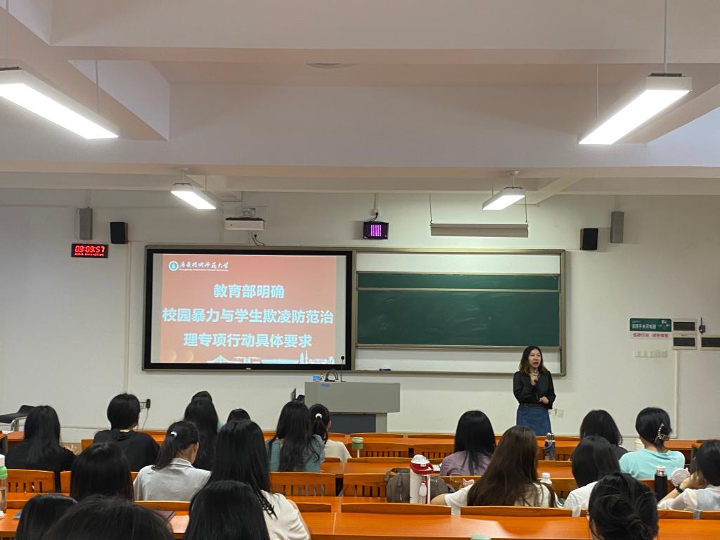 为了进一步营造良好学风、班风、院风,助力和谐校园建设,TapTap点点官方网站于6月3日9:00于唯实楼422教室开展“花儿与少年,成长与安全”主题班会,学院专职辅导员李晓敏带领同学们一起学习专项行动具体要求,并开展欺凌防治专题培训,旨在帮助同学们提升防护意识,系牢安全纽带,实现助人自助。