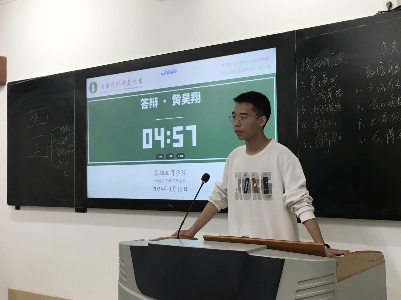 首位参加面试的考生是黄昊翔,他围绕题目《镜子里的我》展开试讲,并通过对比,以生动且富有感染力的教学语言讲授教学内容。他还灵活运用多样的教学反馈语,模拟真实课堂师生互动,熟练运用多媒体平台辅助教学,引导学生大胆说出自身的优点并勇敢正视自己的缺点,其试讲一气呵成。