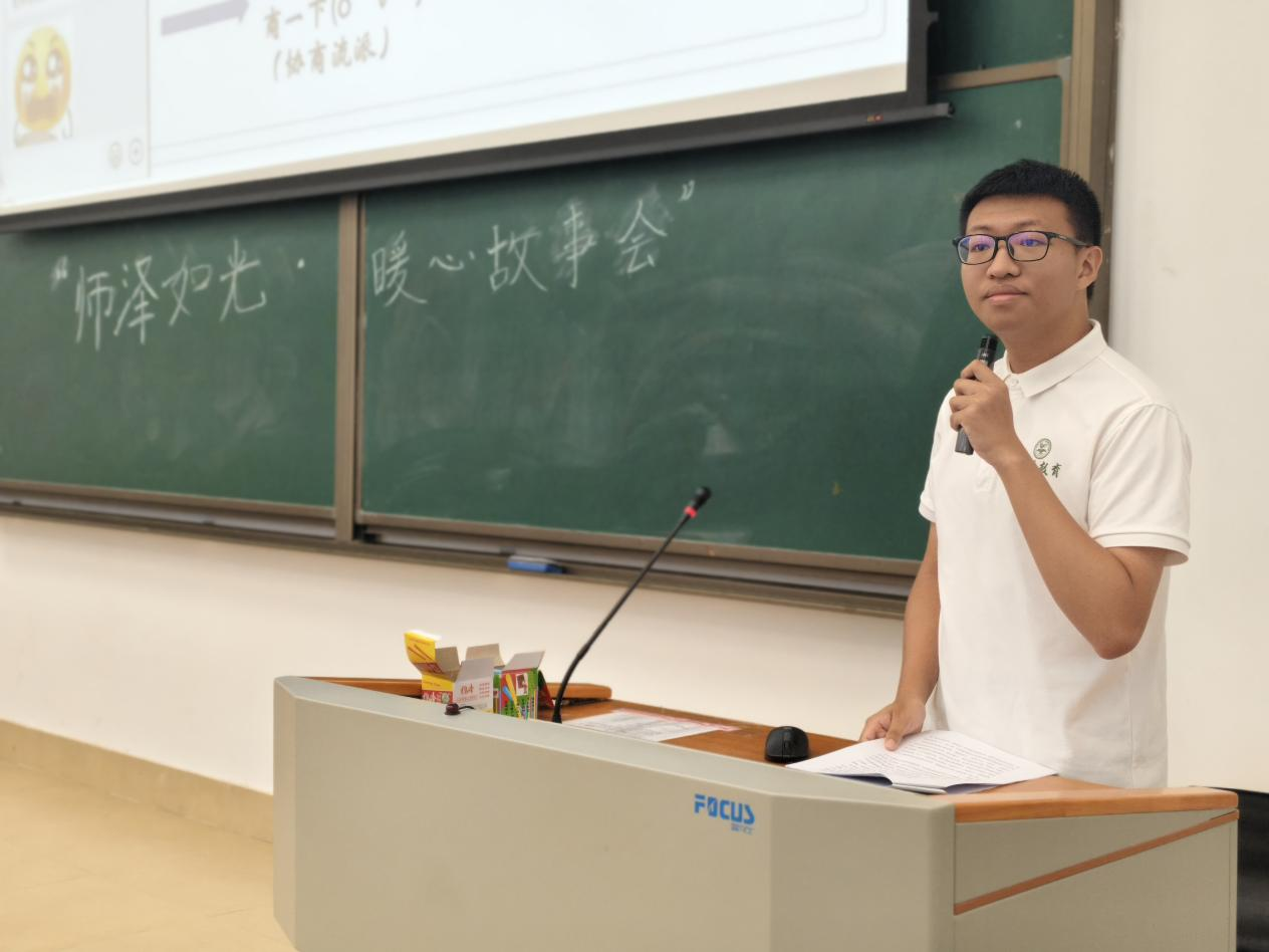 张益升同学分享了三位点亮他生命航程的恩师。小学时,他常因同学“恶作剧”成为办公室“常客”。班主任陈老师却在他人的不解中,读懂了他的善良与宽容。一次,陈老师试探性地鼓励他“反击”,但他终不忍心,这让他更坚定了内心的良善本质。初中时,苗老师用幽默的视角,将他饭前摆餐的习惯视为一种独特的生活艺术。高中阶段,张益升曾因体质弱、成绩波动而濒临崩溃,语文江老师一句“品性纯良、重情义、有担当”的评价,如甘泉般滋润了他干涸的心田。“益升益升,每天益有提升”,名字里的期许,成为他不断前行的动力。三位恩师的言传身教,为他的师范之路奠定了基石,让他深刻体悟到教育是“一棵树摇动另一棵树,一朵云推动另一朵云,一个灵魂唤醒另一个灵魂”。未来,他必将这份育人智慧化作春风化雨的力量,在三尺讲台续写师道传承。