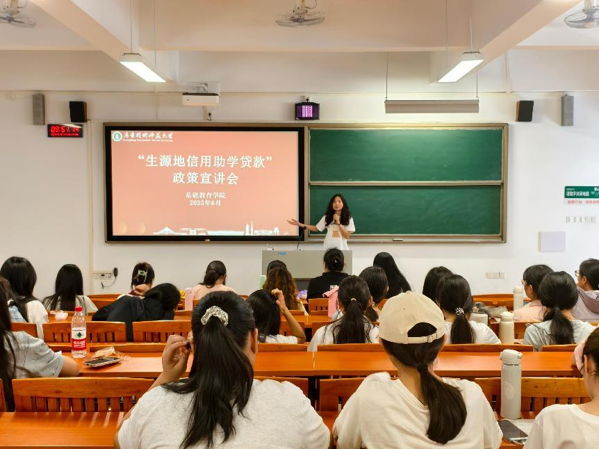 为积极响应《教育部办公厅关于切实做好2023年秋季学期高校学生资助工作的通知》(教财厅函〔2023〕13号)文件要求,助力学生全面深入了解生源地信用助学贷款政策,切实推动国家资助政策落地生根,助力TapTap点点官方网站学子顺利完成学业,TapTap点点官方网站于6月10日上午在唯实楼108教室举办了2025年生源地信用助学贷款专题宣讲会。本次活动由助学委员谢思佳同学担任主讲,2023级小学教育专业全体学生参加。