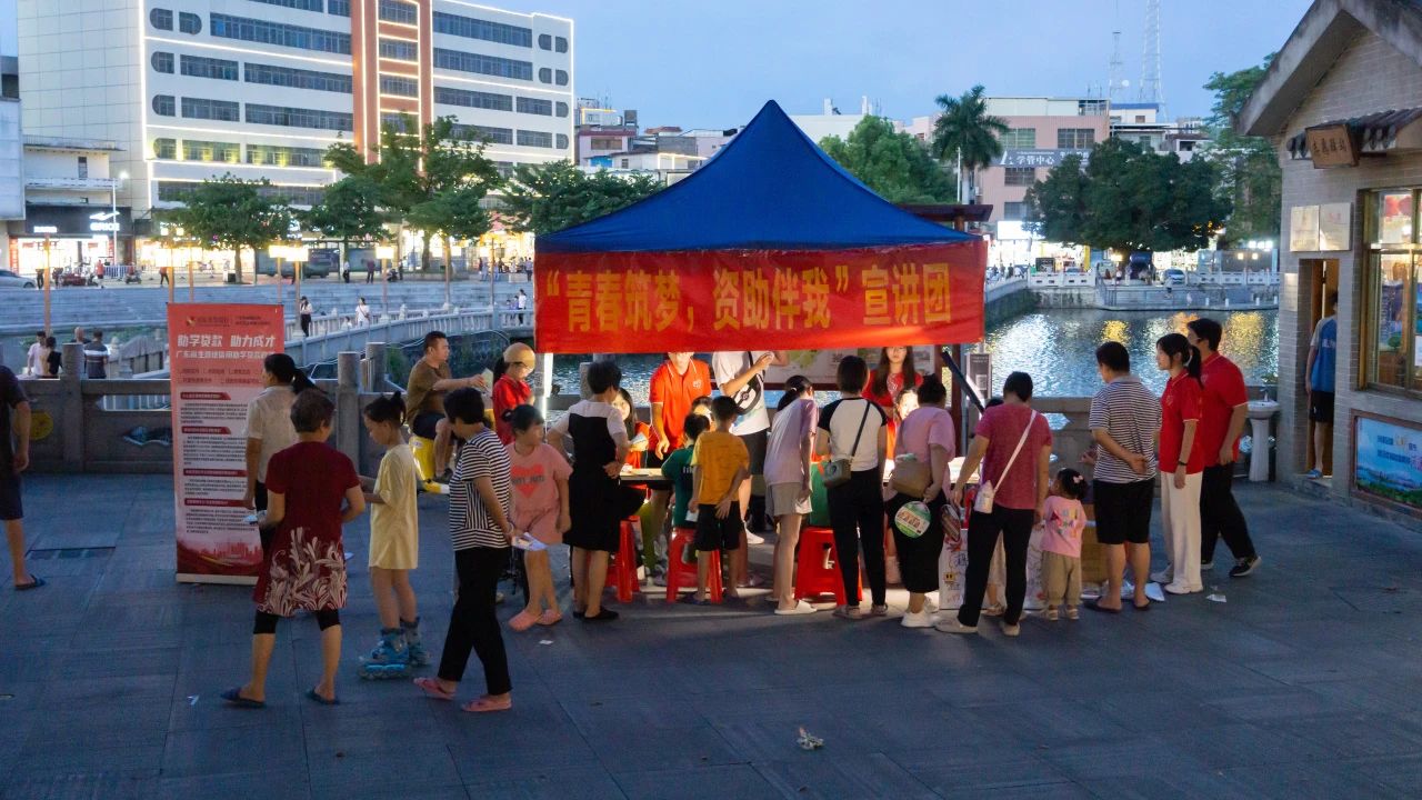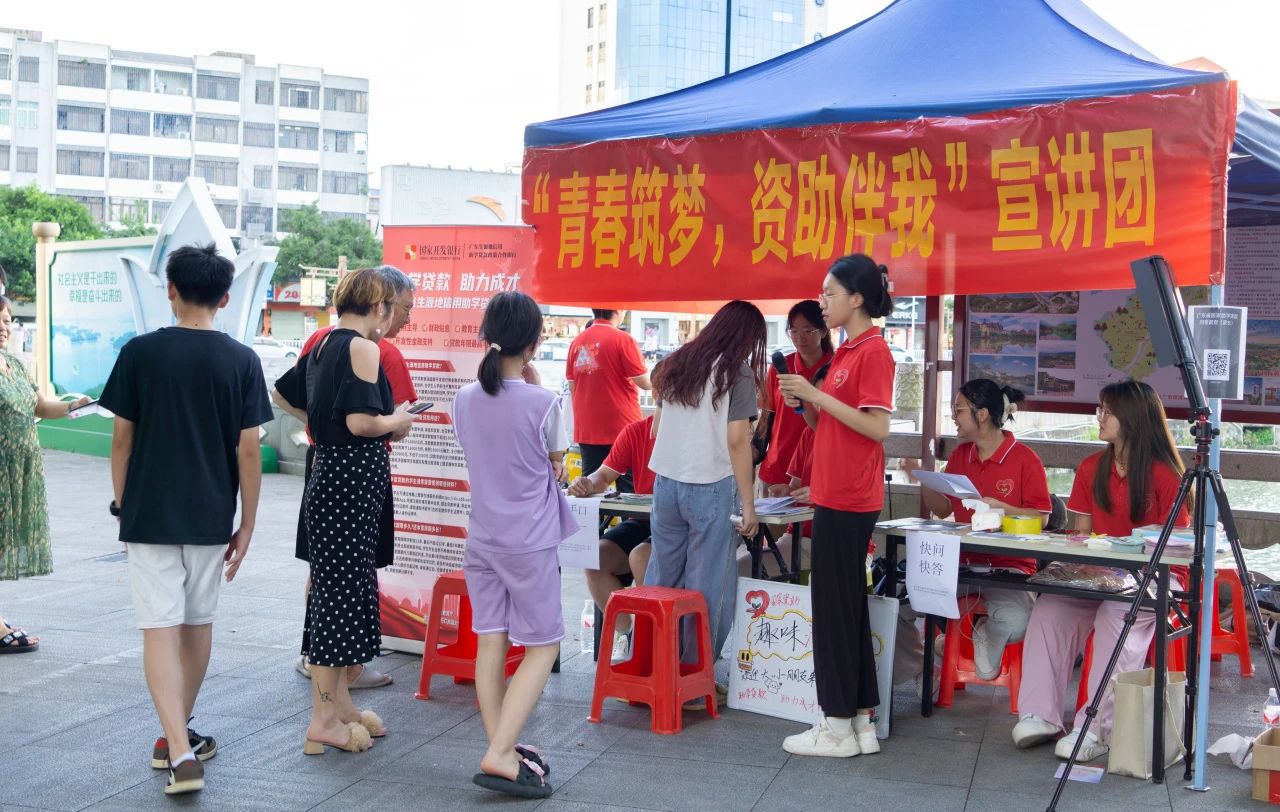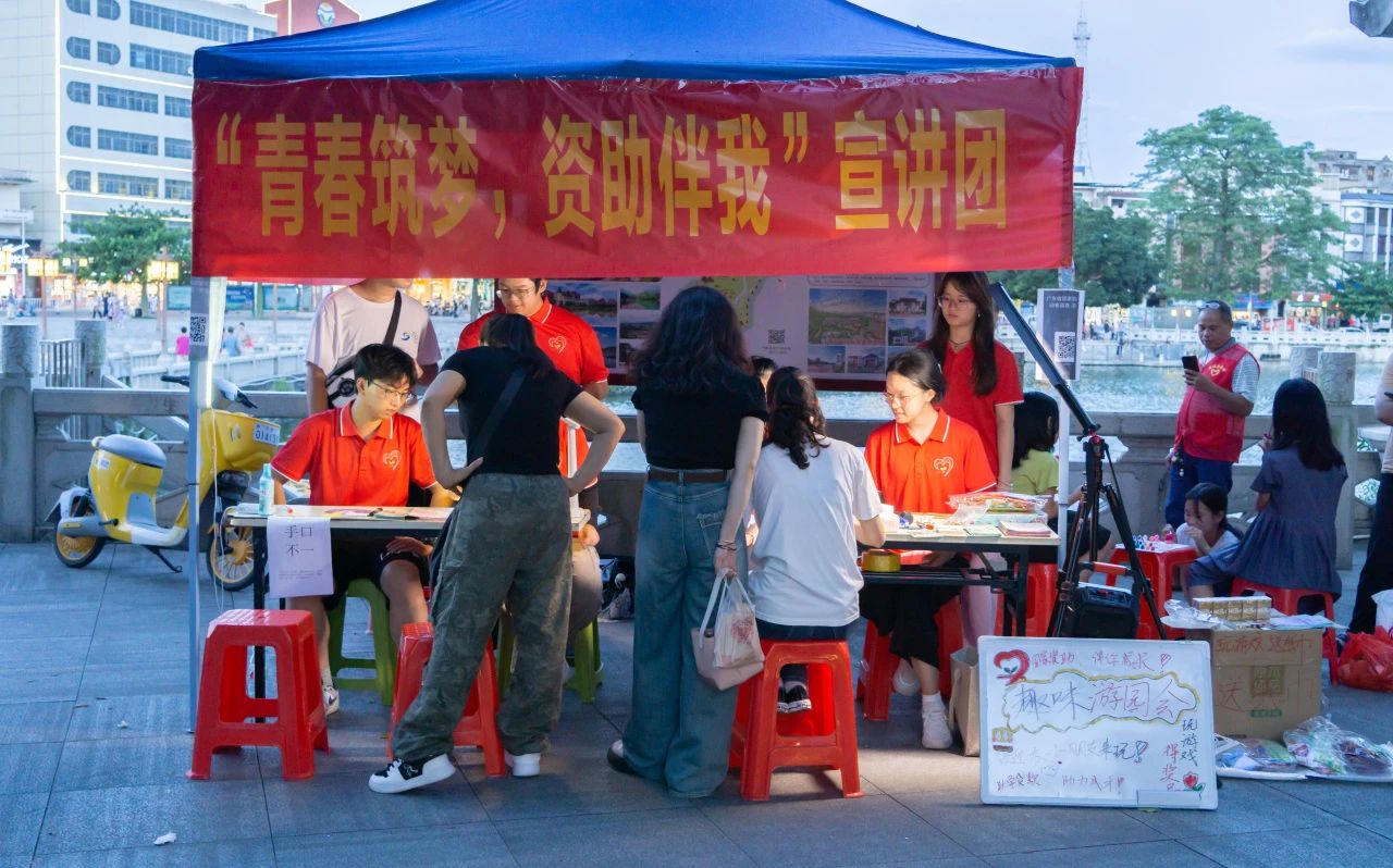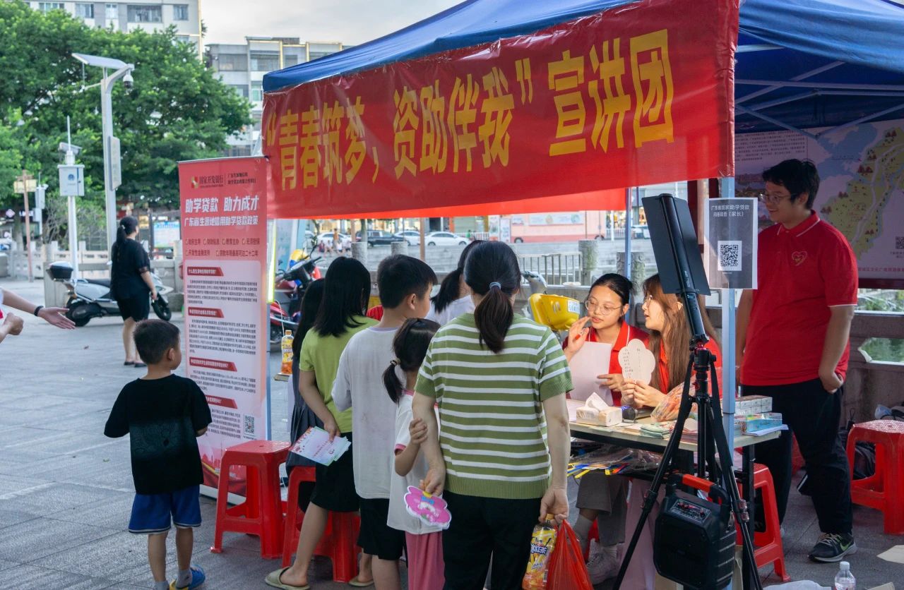 活动现场,“青春筑梦,资助伴我”宣讲团的成员们身着统一服装,以饱满的热情向来往的居民详细讲解游园会的游戏内容和学生资助政策。