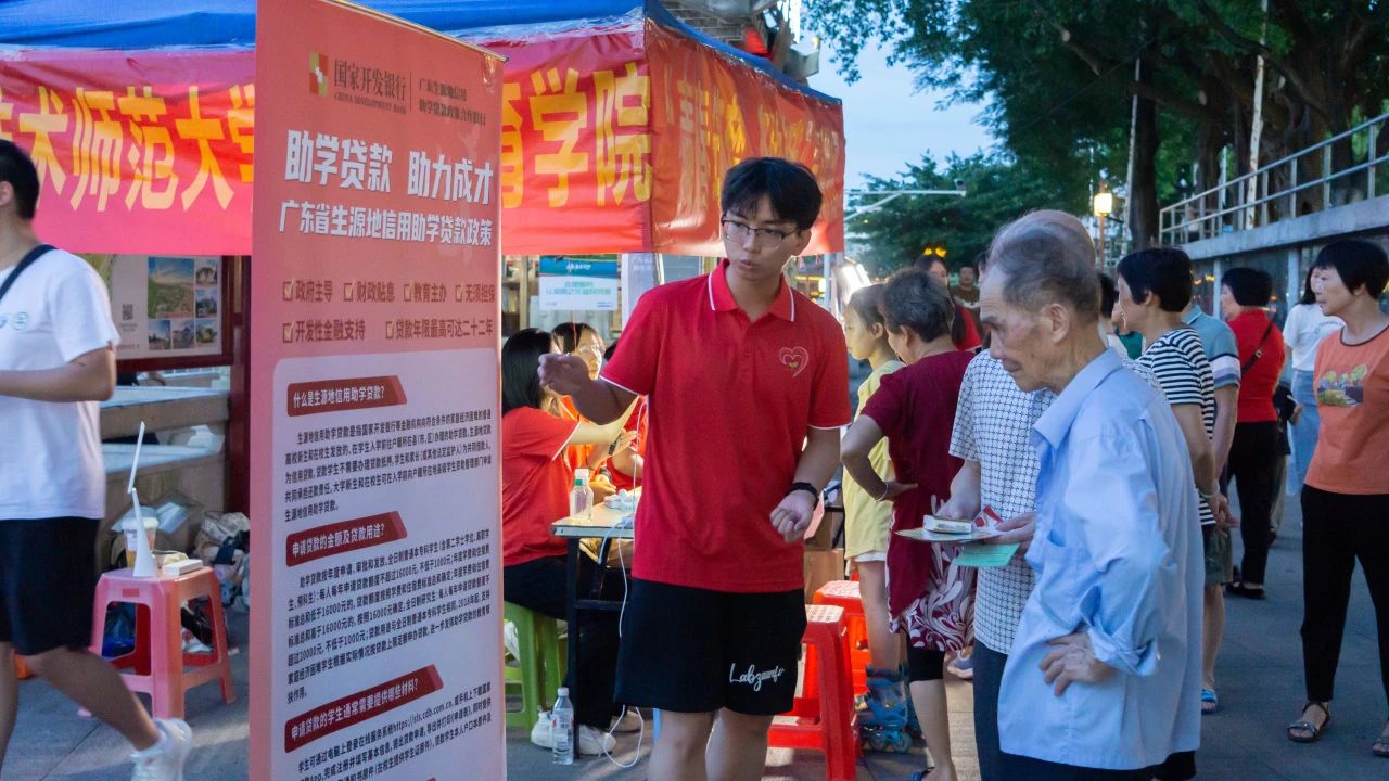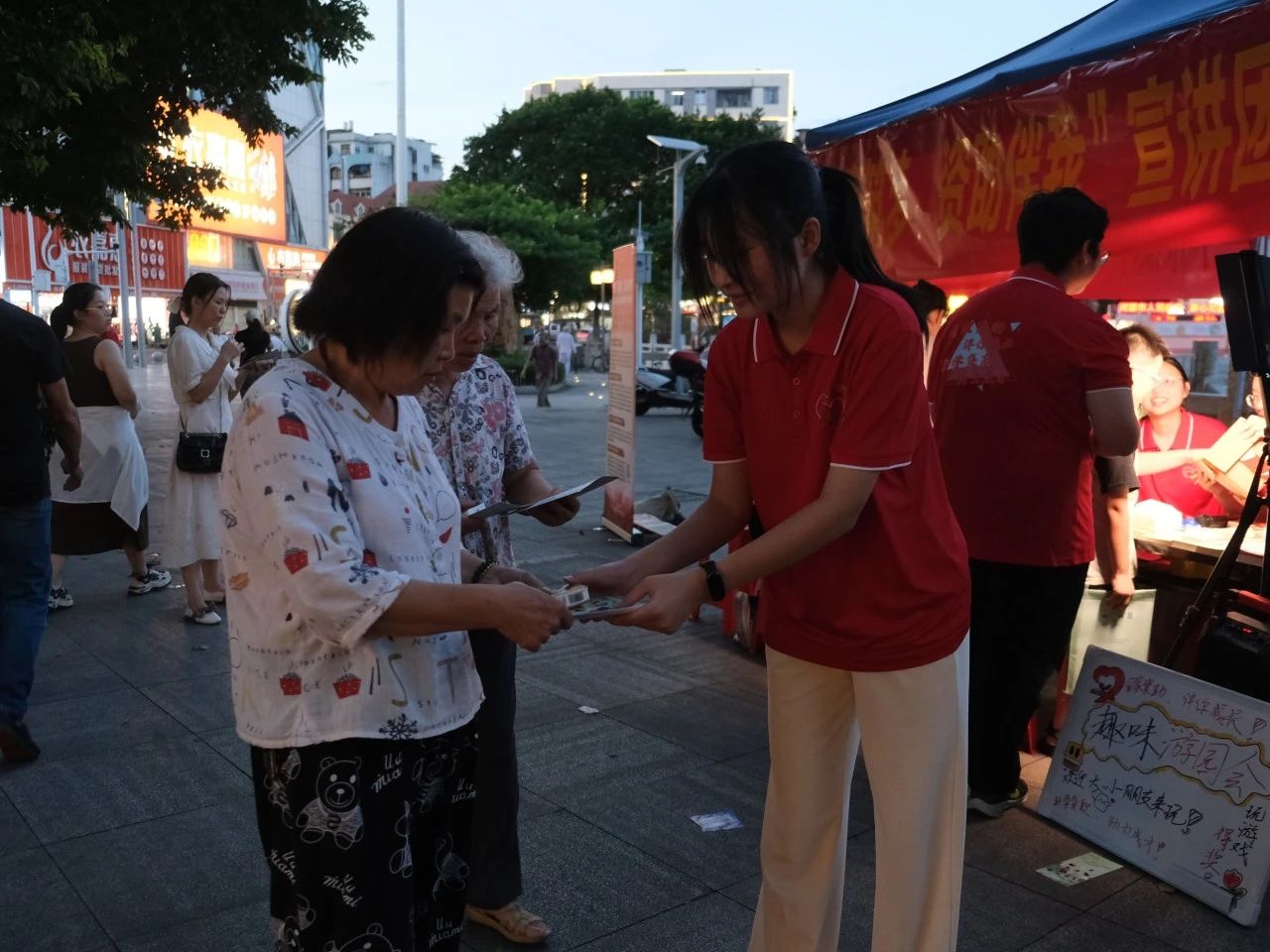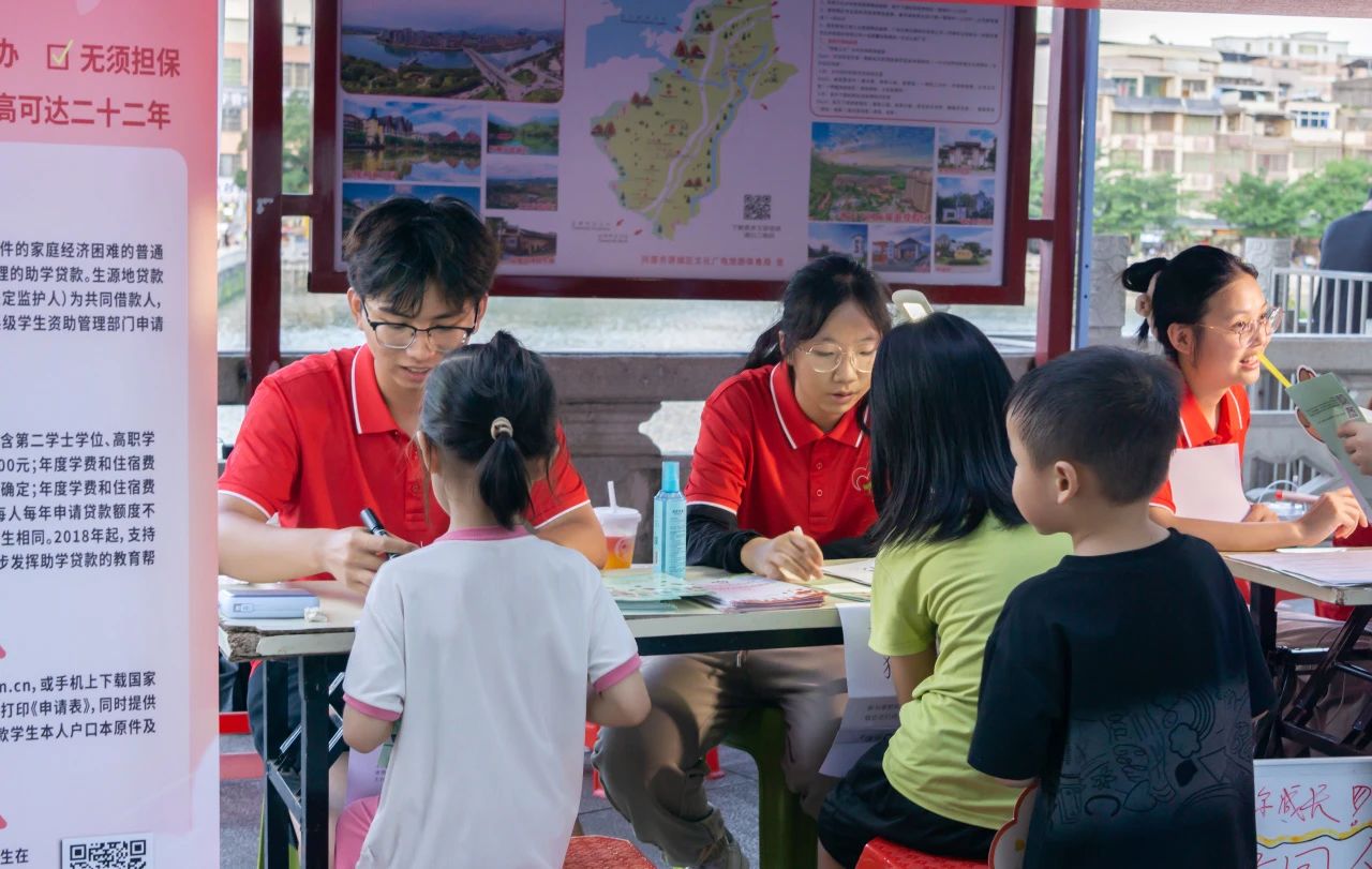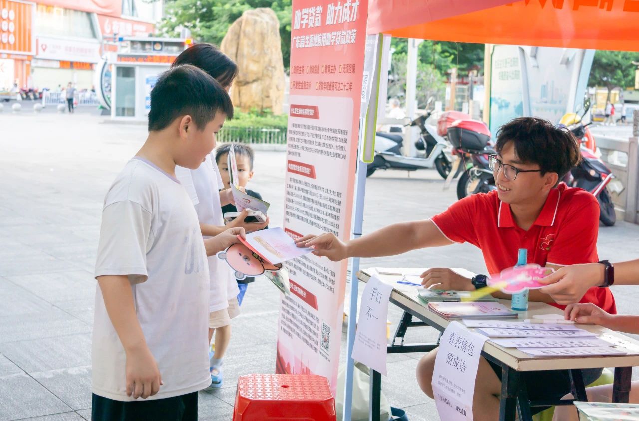 活动现场,“青春筑梦,资助伴我”宣讲团的成员们身着统一服装,以饱满的热情向来往的居民详细讲解游园会的游戏内容和学生资助政策。