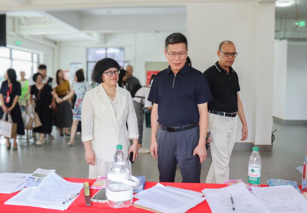 学校副校长苏晖(中)河源校区党委书记罗君辉(右)莅临TapTap点点官方网站迎新大本营,TapTap点点官方网站吴水爱书记(左)陪同