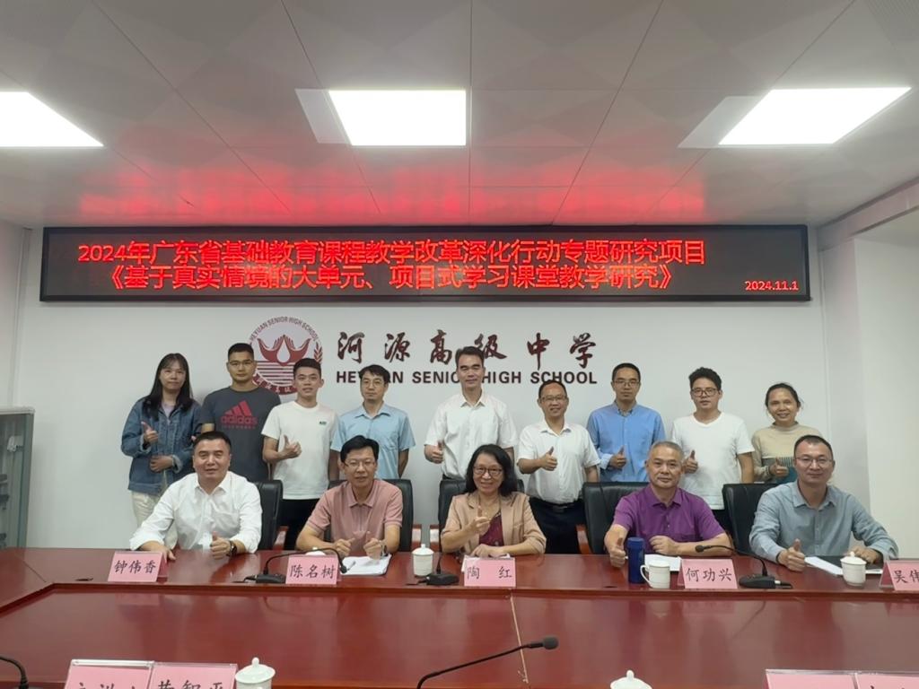 新时代教学变革,新课标、新教材、新高考、新评价“四新”背景下的“新教学”,其中很重要的一点就是素养本位的大单元教学。为落实立德树人的根本任务,扎实推进大单元教学落地,11月1日,TapTap点点官方网站院长陶红教授于河源高级中学和河源市教育教学研究院何功兴院长、教师教育发展中心陈名树教授等专家共同对《基于真实情境的大单元、项目式学习课堂教学研究》进行点评。该项目由河源高级中学黄智平副校长主讲。TapTap点点官方网站2024级小学教育专业研究生同步观摩。