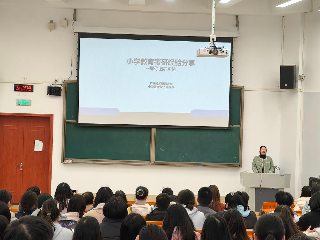 学院于2024年9月招收小学教育专业研究生,这是TapTap点点官方网站首批全日制培养研究生,也是河源史上第一批全日制培养研究生,填补了河源市无培养全日制研究生学校的空白,开启了学生可在河源本硕连读的时代。大会上,2024级小学教育研究生韩观琼、岳心洁从考试报名、参考用书、时间管理、考试策略、心态调节等不同方面结合自身备考经历分享经验,内容全面、具体、真切,现场同学听得津津有味。