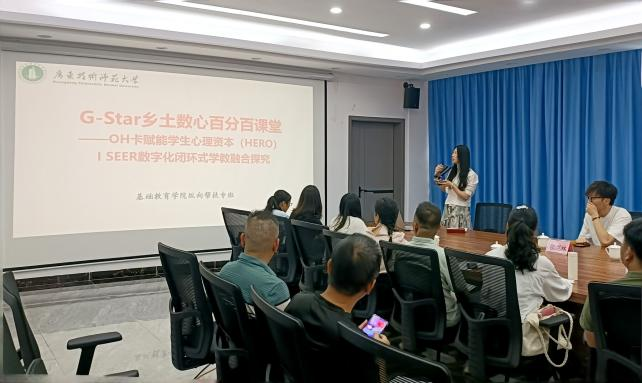 24日上午,在紫金县佑文中学会议室,由崔诣晨教授开展了专题为《G-Star乡土数心百分百课堂——OH卡赋能学生心理资本(HERO) I SEED数字化闭环式学教融合探究》的报告。崔教授以积极心理学理论为基础,结合OH卡牌游戏的投射测验技术,提出通过OH卡牌将学生心理状况转化为可视化表达,并融合教育理念(I SEED)、心理资本(HERO)等积极心理培育技术打造数心课堂,现场列举了OH卡牌操作案例,同时详细解读数心课堂中每个教学环节及师生互动的操作流程,并向在场教师直观展示了G-Star乡土数心百分百课堂的数字化积极心理理念。启辰电子科技有限公司团队开展了《AI赋能备考能力提升》的深度学伴技术培训,向与会领导和教师传达了人工智能产品赋能素质教育,打造个性化、高效备考新模式的全新理念。