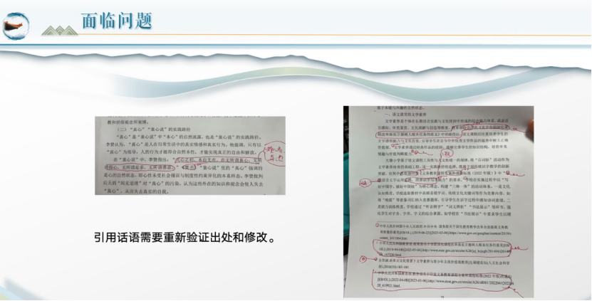 在丛书撰写与汇报环节,负责第一、二批丛书的教师逐一分享进展与难题。贺玲老师提出,撰写过程中需加强与对接学校的常态化沟通,精准提炼学校品牌文化;熊华军院长团队以大塘小学“童心教育”为案例,详细展示了从书目框架搭建、实地调研到撰写打磨的全流程;王孝金老师分享了材料收集整理的实操经验;付平老师介绍了所负责两本书的推进情况;杨定玉教授则结合自身经验,在参考文献规范与图片引用标准等方面为参会教师提供了实用指导。