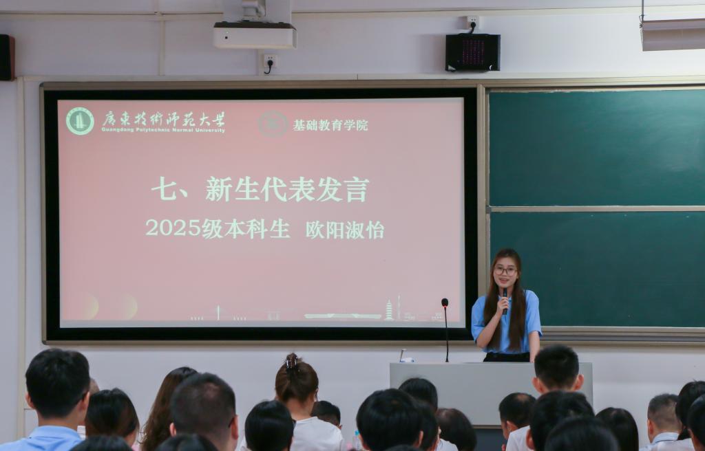 2025级本科生欧阳淑怡、研究生周丽芬作为新生代表则表态,将以饱满热情投入学习研究,为基础教育事业贡献力量。
